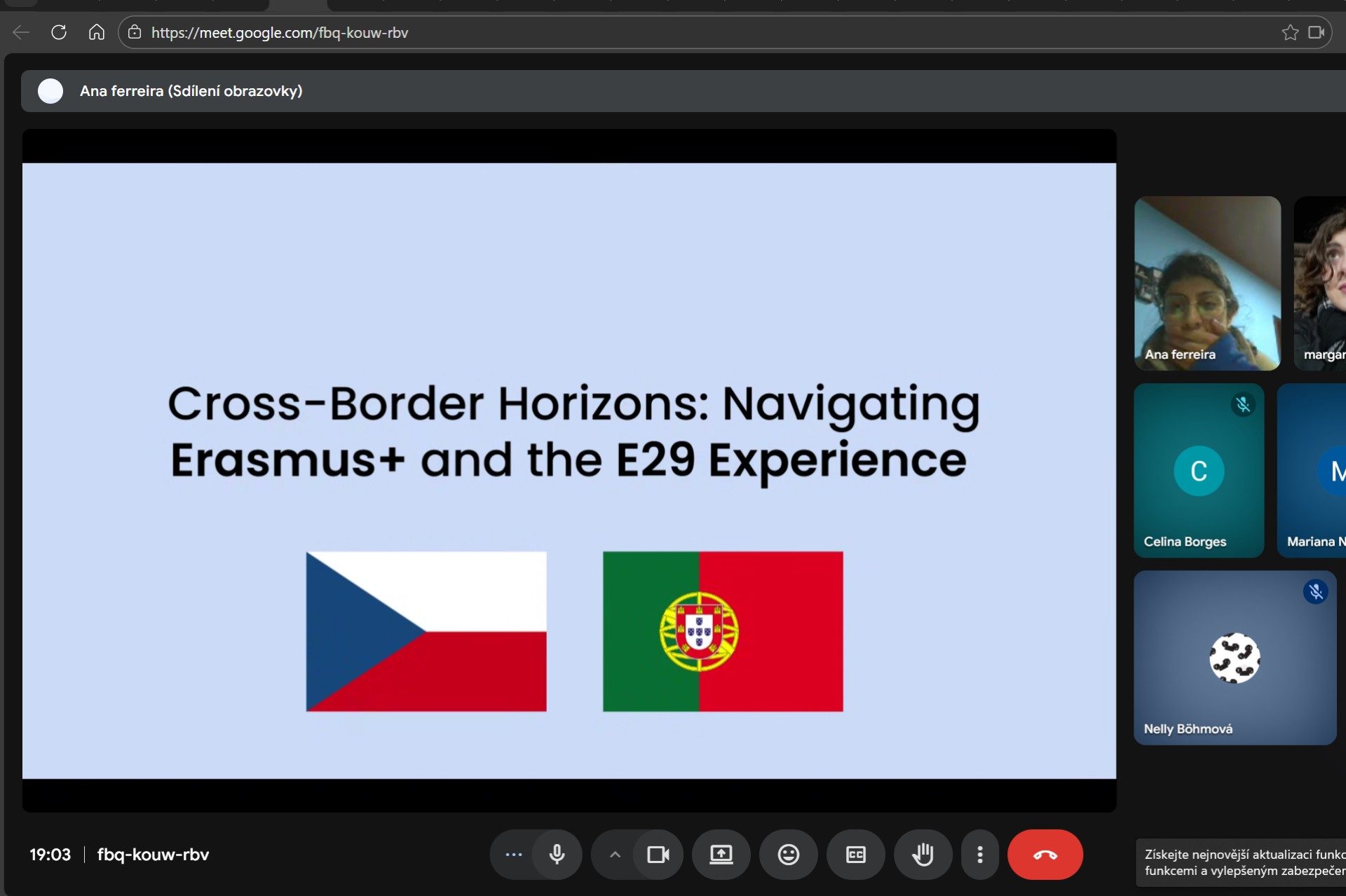 Dissemination held by Ana Ferreira and Amalie Bradacova, online via Google Meet, for 10 people. They organized and hosted an online workshop, Cross Border Horizons: Navigating Erasmus and E29 Experience, to showcase Erasmus+ and Youth Exchange opportunities. They presented E29’s mission, shared the Shock Waves activity, and encouraged intercultural dialogue, aiming to both inform and inspire young people to participate in high-quality projects.