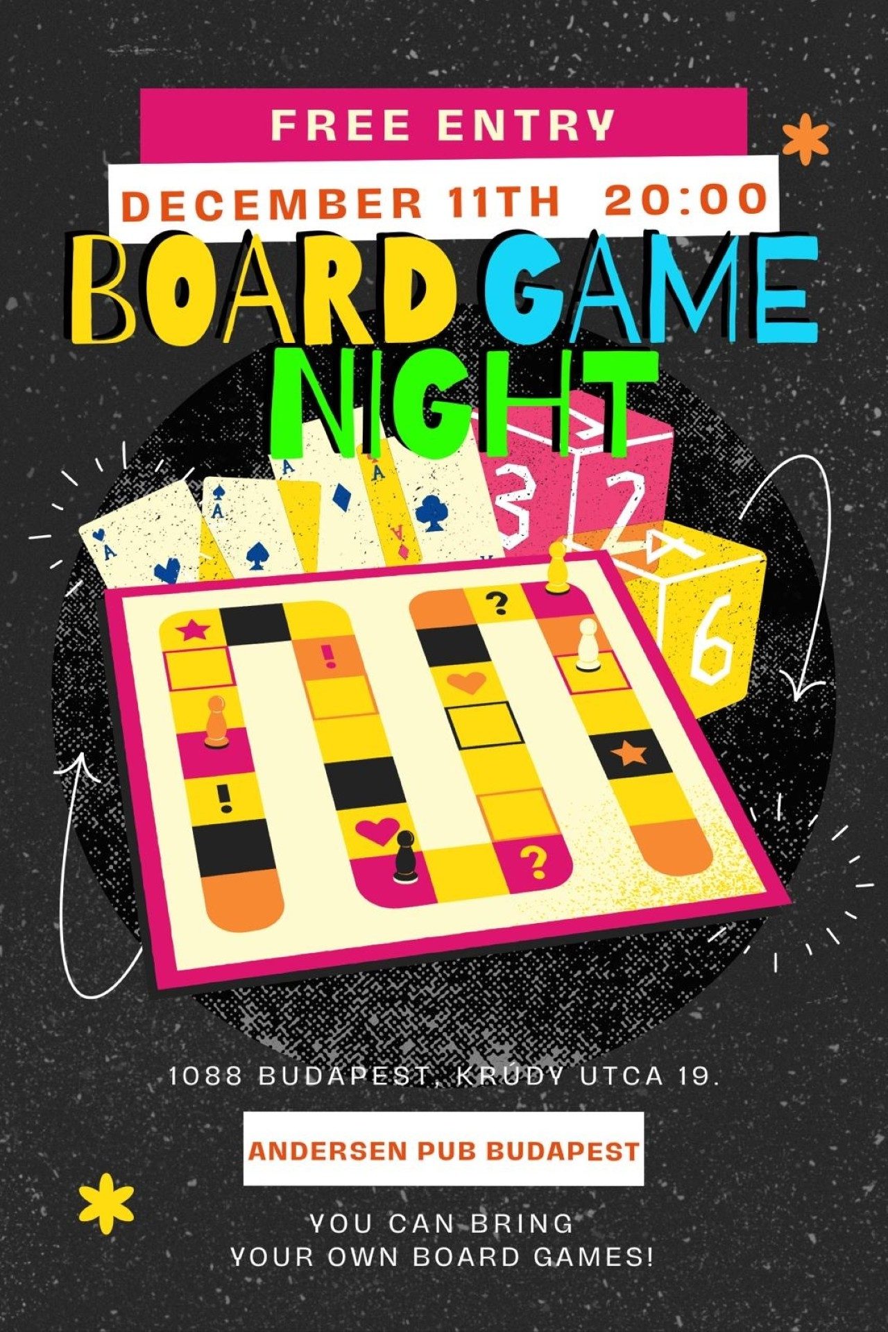 The Hungarian team organized a Board Game Night in Budapest. They arranged the location and to promote the event they prepared a flyer, which they distributed in their community.