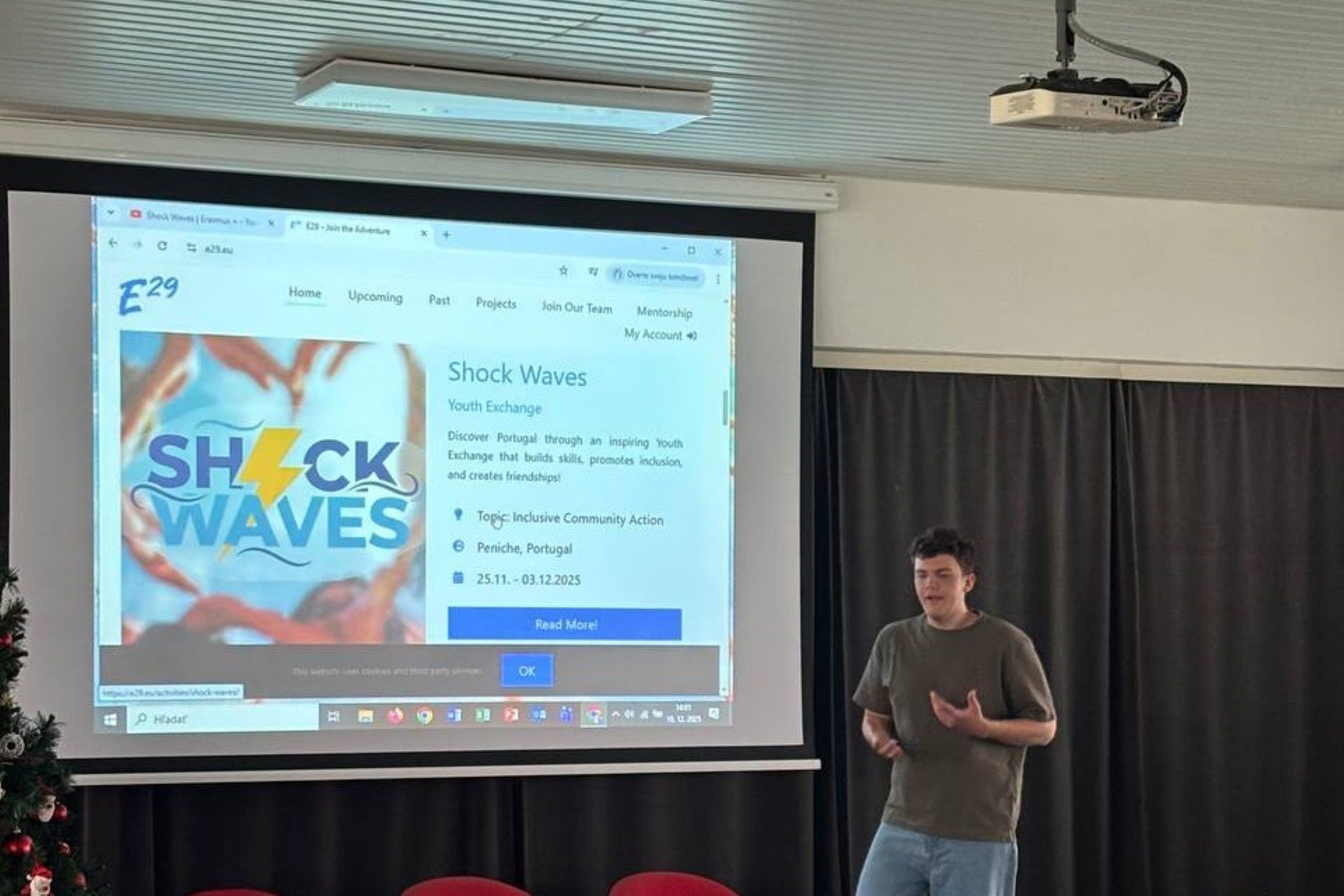 Dissemination held by Timea Juhasz at her house, for 8 people. The dissemination activity took place during a family Christmas gathering, where she gave an informal but structured presentation about her Erasmus experience in Portugal with E29. During the presentation, she introduced the Erasmus+ programme and the E29 organization, explained its objectives, and shared details about the activities, workshops, and learning outcomes.