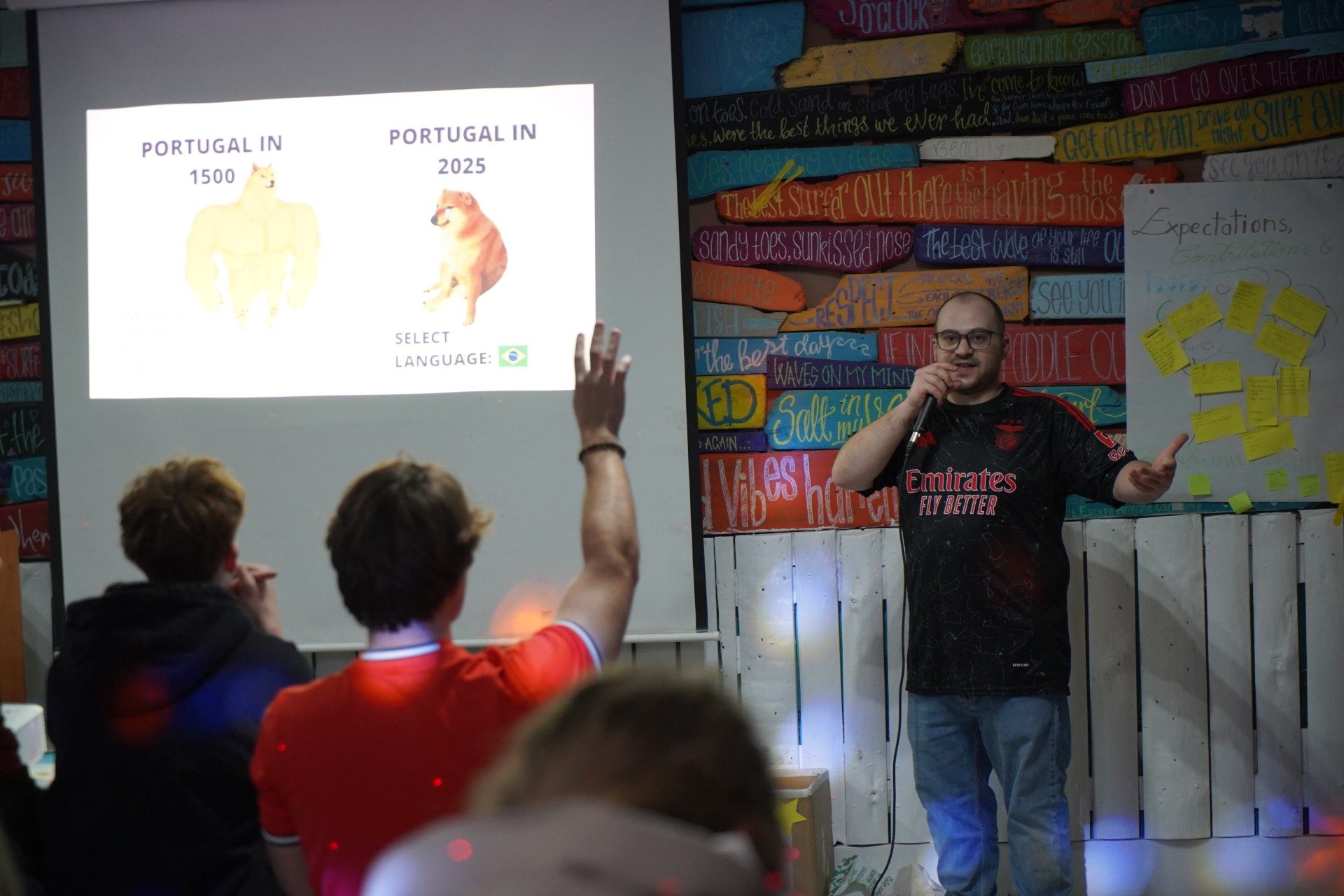 After discovering both the strengths and challenges of Peniche’s community, participants were ready to turn insight into action. Ideas flowed quickly and creatively, which led to the formation of three project groups: one focused on a beach clean-up, another on a calming yoga session, and the last on a lively karaoke night.
